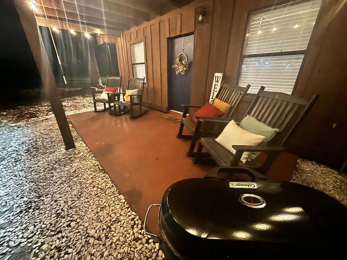 Beautiful, cozy cabin on Gantt Lake, AL. It has a queen bed in the master bedroom and one in the loft, along with a rollaway bed already set up. Two additional rollaway beds are located in the attic. There is no pullout sofa. 1.5 bathrooms, washer, dryer, and a fully operational kitchen. Two delightful electric heaters create a charming ambiance all year round. The cabin has a fenced in yard, gated covered porch, and a great boathouse.