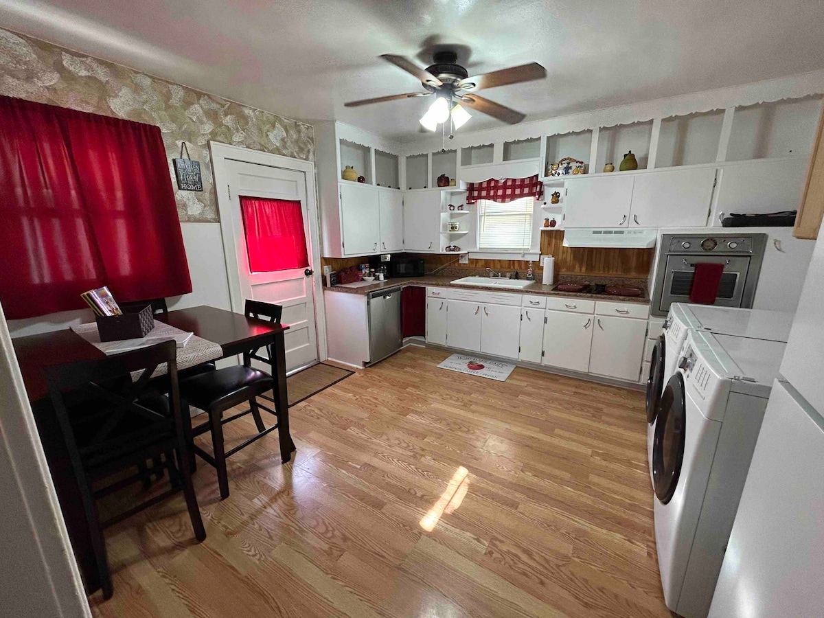 Excellent small home right in the middle of downtown Hays. Only 2 blocks from FHSU, The Water Park, Restaurants, Bars, and Shops! Our place is great for FHSU parents traveling for Athletics, Alumni, Families and Travelers. Also enjoy Big Creek & an 18 hole disc golf course only a block away! The Space Small and charming 2 bedroom 1 bath cabin style house completely remodeled in 2016. Guest access Entire house. Other Notes Cabin has floor furnace and is not ideal for crawling toddlers.