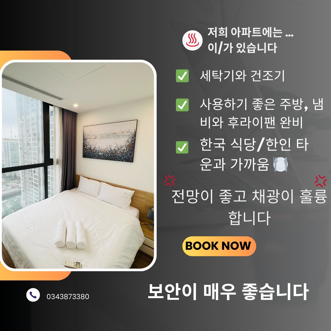 Căn hộ bạn sẽ ở - Irene home __Vị trí: Vinhomes SkyLake tại số 50 đường Phạm Hùng, Quận Nam Từ Liêm - Vị trí trung tâm thuận tâm thuận tiện di chuyển tại Hà Nội. __Đối diện là khu phố Hàn Quốc, vui chơi, mua sắm: The Manor, Đình Thôn (Cách 300m). Kế bên toà nhà Landmark 72 - Keangnam Tower (Cách 200m) đầy đủ dịch vụ mua sắm. ✔️Tiêu chuẩn căn hộ cao cấp, sang trọng và tương đương khách sạn 5 sao. ✔️Có người dọn dẹp phục vụ theo ngày. Tôi luôn hỗ trợ quý khách 24/24 nên xin hãy liên hệ với tôi 💕