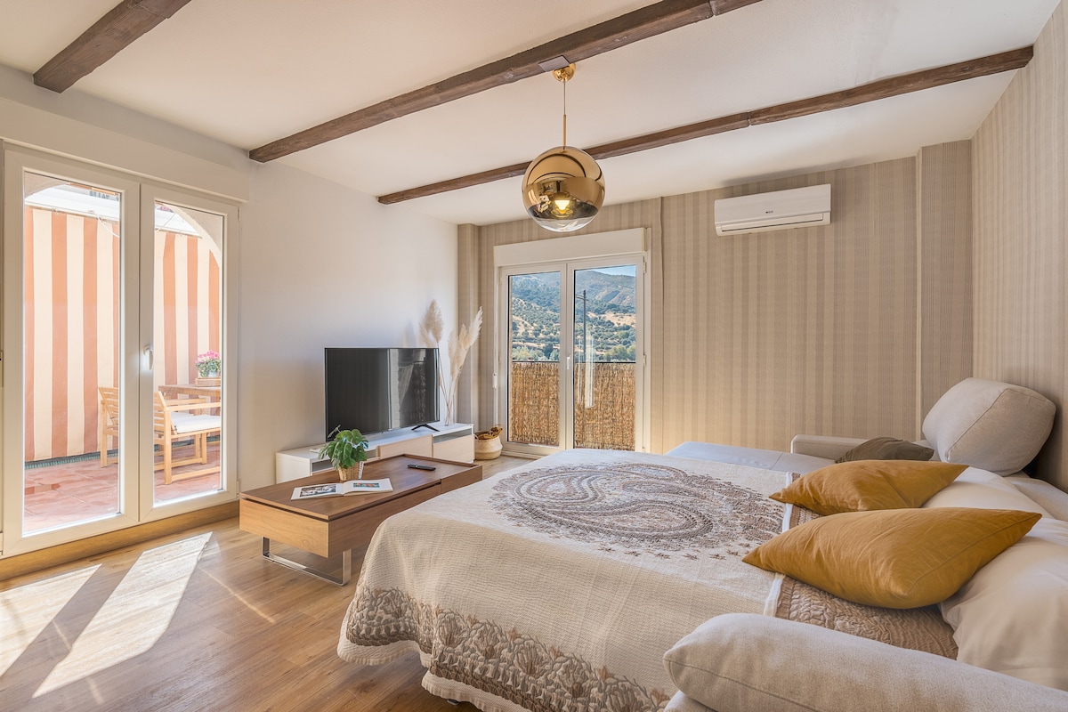 A cozy, bright and charming 2 bedroom apartment in the old town of Monachil, a municipality in the Sierra Nevada National Park. At the foot of Los Cahorros, just 10 km from the Alhambra and 20 km from the ski slopes. With a beautiful terrace and wonderful views of the natural environment. Ideal whether you are looking for a place to rest, to practice sports (hiking, mountain biking, skiing, etc.), to enjoy the lively socio-cultural life of the municipality or to get to know Granada capital.