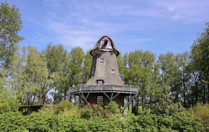 In our windmill "Kallis Mölln", which is converted into a holiday home, you will find a unique holiday home for two people. Located directly on the Harle River, you have found an exceptionally beautiful place all to yourself. And with your vacation, you help us to restore and preserve our windmill. Highlights of "Kallis Mölln" are not only the charm of living in a windmill itself, but also the very exposed location in nature.