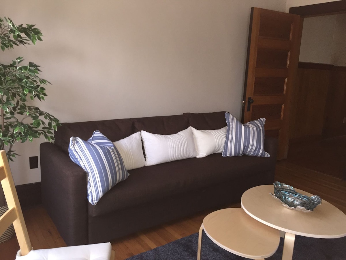 This historic home has the charm of the old house with the new Modern style set up. It is 3 mins drive from downtown Springfield. Within 5 mins drive to the medical district and the historical sites. This basement unit offers a full-sized memory foam mattress with a private bathroom. 55” TV. A dedicated work space, a romantic dining area. It has microwave, coffee machine,toaster and portable stove,front-load Samsung washer & dryer. (Washer & dryer are shared with main floor unit guests!)