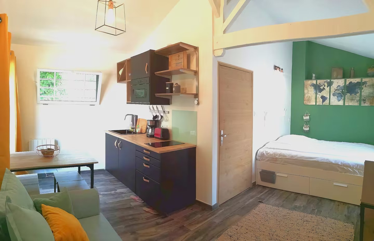 A moins d'une heure de Paris en plein cœur du Véxin, séjournez dans notre propriété équipée d'une piscine. Votre logement, au rdc de notre maison comprends une pièce de vie avec cuisine ouverte, 2 chambres en enfilade (lit double 160 et lits superposés), sdb avec baignoire balnéo + douche, WC séparé. Canapé-lit (110x190), lit bébé possible. TV avec chaînes Canal+ L'accès aux terrasses, grand jardin, trampoline, hamac et cages de foot : détente pour les grands, jeux en plein air pour les enfants.