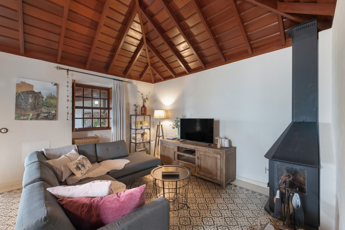 A rural house recently restored respecting traditional values, isolated and located in a very quiet area of Tijarafe, such as the Pinar neighborhood. Surrounded by orchards with fruit trees, almond trees, and Canary Island pines. Wonderful landscape overlooking the summit and the sea. Suitable for hiking and night sky observation. It is about 10 minutes from the town of Tijarafe, and a car is needed. At sunset you can enjoy spectacular sunsets.