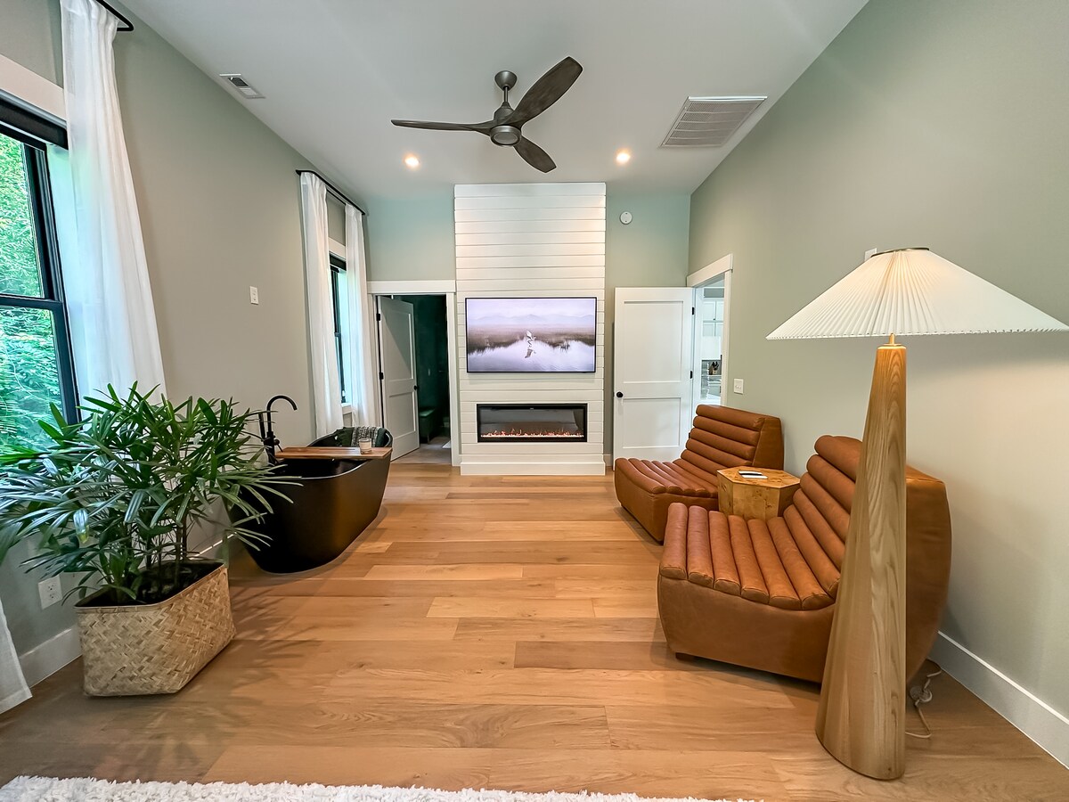 The James is a unique NEW 530 sq ft retro coastal tiny home located in a gorgeous neighborhood on James Island ◡̈ 10 mins to downtown Charleston 12 minutes to Folly Beach Walking distance to restaurants The James sleeps up to 6 people and 2 dogs (NO PET FEE) & boasts a private fenced yard & patio with an outdoor shower and Clawfoot tub! The James is ideal for solo travelers, couples, families, those traveling w/ their dog(s), those w/ limited mobility and groups of friends. #BNB-2023-02