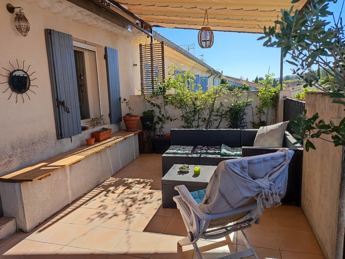 Ideally located, lovely stone village house with inner courtyard, swimming pool, not overlooked. 2-minute walk to the historic center of St Remy. Completely renovated this year, fully air-conditioned. On the ground floor, a nice living room, a fully equipped kitchen, laundry room. Upstairs, 2 bedrooms (180 beds or 2X90 Twins) each with their own ensuite bathroom with walk-in shower and toilet. Linens are provided, sheets, bath and pool towels.