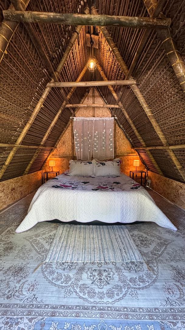 Surround yourself with style in this standout space. Take it easy at this unique and tranquil getaway. Unlike traditional tents, Our A Tent cabins are cozy and wild and remote nature luxurious allowing for a more comfortable camping experience. They also often come equipped with amenities such as a built-in floor, windows, 1 Queen Bed, an open concept Veranda with sets of 1 camping table and portable chairs, outdoor shower, washing sink and even electrical outlets.