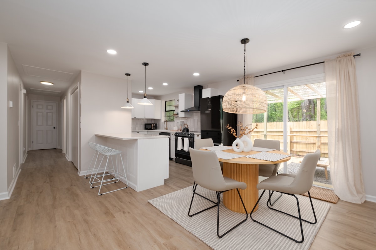 3BR/3BA Ranch House, SMART TV in every room, Private Backyard, Grill & Fire Pit. <1 mile from Walmart, Lidl, Aldi 4 miles to Downtown Woodstock 15 miles to PBR LakePoint 3.5 miles to Hwy 575 You will have the entire thoughtfully designed home to yourself. Enjoy the freshly renovated home with tons of NATURAL LIGHTS, FULLY EQUIPPED KITCHENS, SCREENED IN PORCH, STUDIO with tons of GAMES. Sleep up to 8 people! Many Shoppes & Local Restaurants within a 2-mile radius from the house.