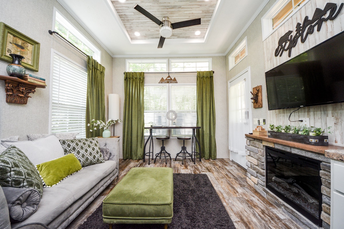 Escape to a luxury tiny home featuring a unique treehouse-style bedroom, set on 34 private acres bordering the Cherokee National Forest. Step outside to a spacious covered outdoor living area with a 14-foot stone fireplace and a private hot tub surrounded by peaceful forest views. Thoughtfully designed for comfort and relaxation, the home includes upgraded linens, soft robes, complimentary champagne, coffee, water, and curated snacks to make your stay feel effortless and elevated.