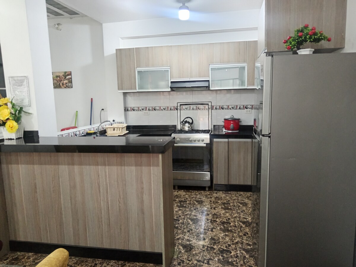 If you come to Chiclayo for work, health or vacation, alone or with your family, we offer you a spacious apartment, super bright and fully furnished in a central location in Chiclayo with capacity for 6 people, close to shopping centers and restaurants, our Airbnb has two spacious rooms, equipped kitchen, cozy dining room, and an ideal grill to share, we have everything you need for a comfortable and safe stay, book now and live the best experience.