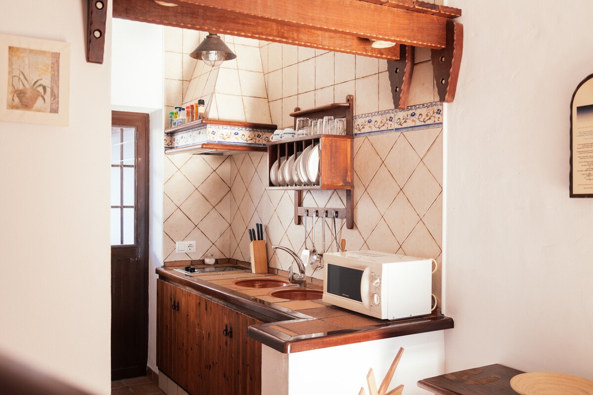 The accommodation La Tiendecita de María (it owes its name to the fact that this house was also used as a grocery store), is a cozy house, built in 1904 and currently renovated, keeping the essence of the typical Asidonese house, construction of stone walls and whitewashed together with its wooden beam ceiling, give it a high degree of comfort and warmth. Nestled in the emblematic Santiago neighborhood in the heart of the city's historic center and its monumental complex.