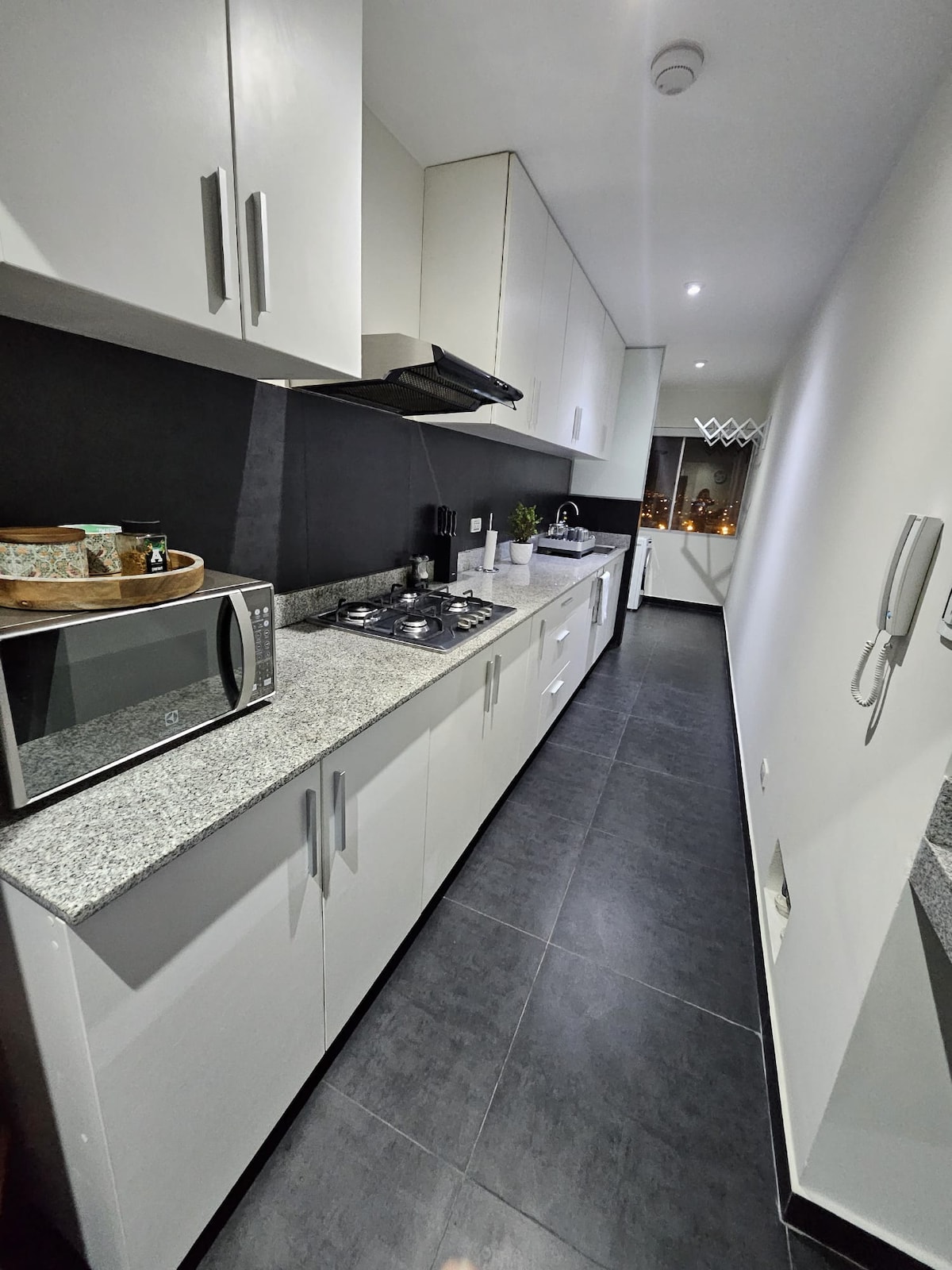 Spacious and elegant apartment in the heart of Barranco. Prime location: Within walking distance of the main tourist attractions of Barranco and Miraflores, the best restaurants, bars and art galleries. Master bedroom: King-size bed and large walk-in closet. Open and bright space: Living room and kitchenette with natural light. Private garage: subject to availability Common areas: Gym, meeting room and children's play area. Minimalist style.