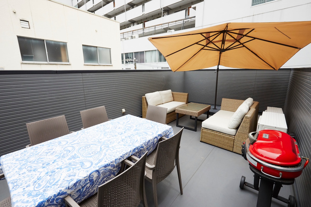 [Warm] Osaka Tsutenkaku 3 rooms/2 baths/1 toilet with terrace, can accommodate up to 10 people/convenient transportation and living, 3 mins walk to Shin-Imamiya, direct access to the airport, near Namba