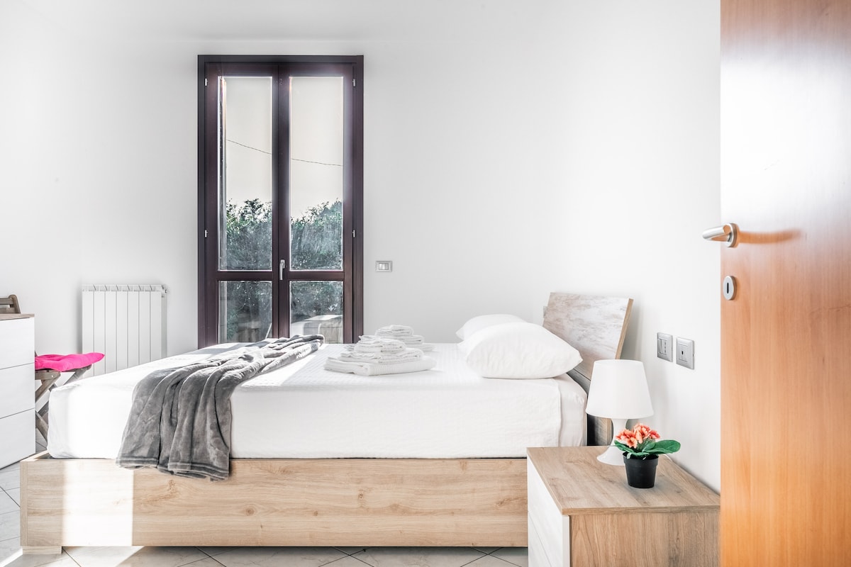 Excellent solution just outside Milan Beautiful recently renovated 80-square-meter three-room apartment Consisting of a large living room-equipped kitchen and sofa bed/double bedroom with exclusive toilet/bedroom with single bed and sofa bed/toilet and washing machine area/balcony/air conditioning/mosquito nets/TV/wifi 8-minute drive from Bisceglie subway 15-minute drive from San Siro Stadium 17-minute drive from Rho Fiera Large free parking under the house