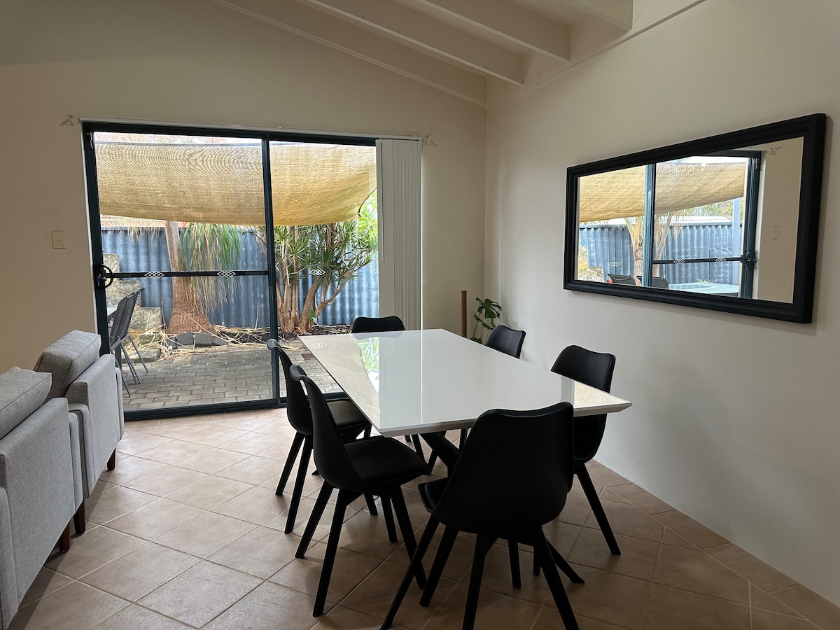 Our home boasts modern technological integration and entertainment to enhance convenience and comfort during your stay. A central location & spacious living area equipped with an outdoor fire pit, our home promises a welcoming atmosphere. Public transportation conveniently positioned near our residence will help you explore Perth's hot spots in comfort and ease. Relax in luxury with your own: - Private Mini Fridge - Work Station - Monitor to plug and play - Street View - Storage Space