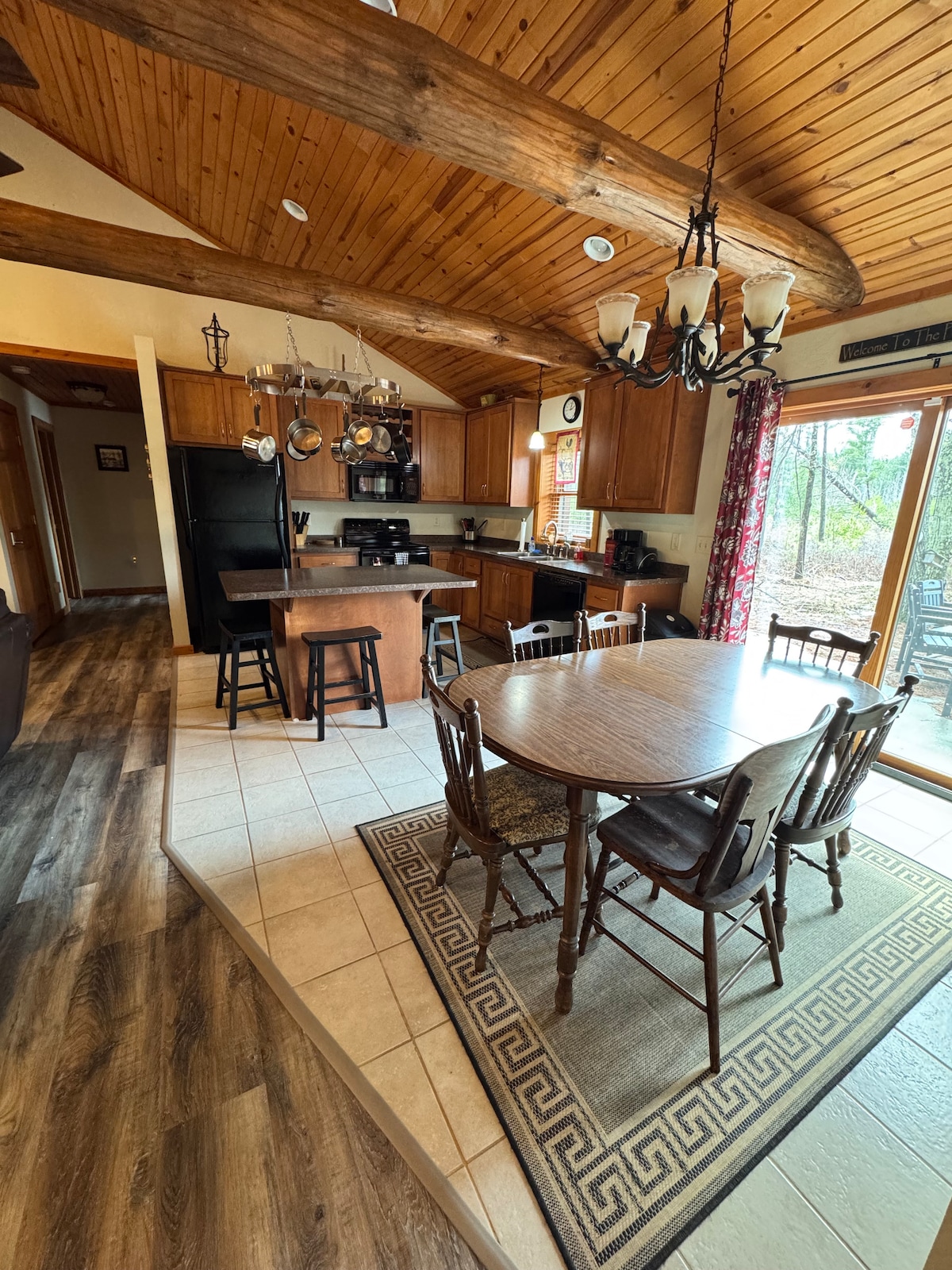 This is the cabin in the woods that you've always dreamed of. This quiet and secluded split log cabin is surrounded by towering pine trees to keep out the noises of the world. Free yourself of electronic distractions and enjoy nature. You will see lots of wildlife as you sit in peace on the covered porch or the back deck watching the sun set. There is a game room, puzzles, board games, and more. Other locations are a place to stay when you go to your destination, this cabin IS your destination.