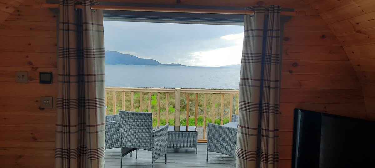 Beautifully appointed modern pod , boasting full size shower and larger than your usual pod layout. Only 15 minutes drive to fort william where you will find lots to do including Ben nevis , jacobite steam train , nevis range and much more . Alternatively 10minutes away from Glencoe where you will find walking for all abilities with stunning views . Set just up from the shores of loch linnhe you have panoramic views of the loch and surrounding mountains .Decking area has gate .