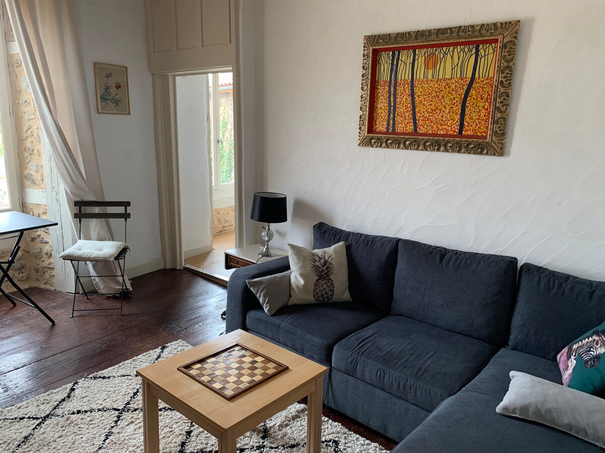 This small apartment is located on the ground floor of a large house, on a quiet street between Place Carnot and Parc Thuyas, a 20-minute walk to the hyper center. It consists of a small living room with equipped kitchen, a bathroom with walk-in shower and a bedroom that opens onto a private and shaded courtyard. (I accept short stays but for the sake of ecological responsibility, I no longer provide linens except on request. €12 supplement)