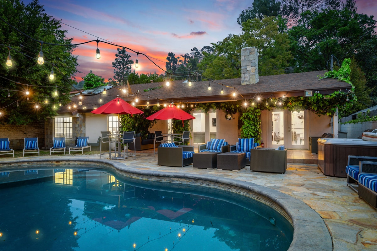 Serene retreat, nestled in the Hollywood Hills; spiritual zen, private oasis. Sensuous & cool with a modern Asian/Balinese influence, perfect for indoor/outdoor entertaining. Every bathroom offers peace & relaxation. Spacious master bedroom with fireplace and en-suite bathroom, soaking tub, and rain shower. Lounge in the outdoor heated spa. This home evokes an emotional response. Also, we are pet friendly. Our home can only accommodate up to 8 people, no additional guests or visitors allowed.