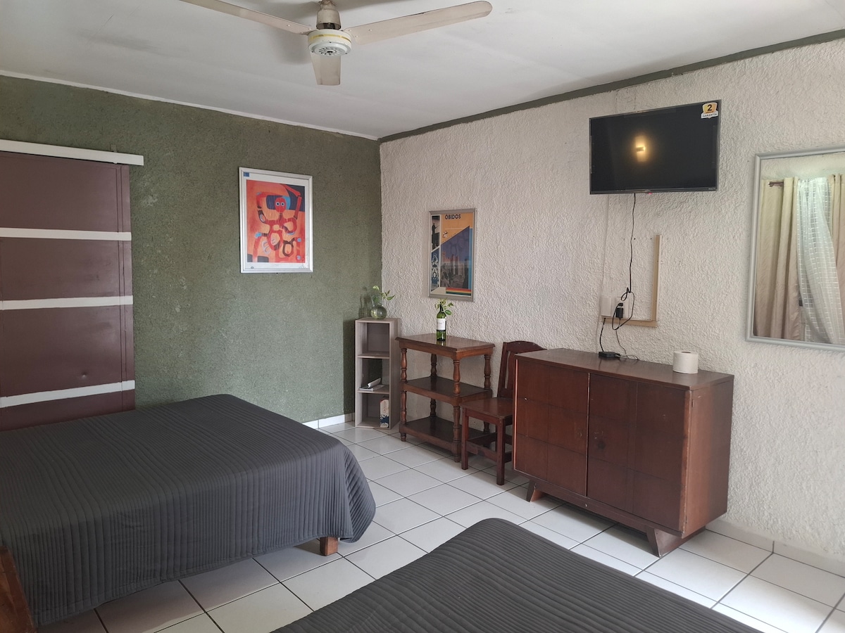 Located on the Guadalajara-Colima highway at the height of the Trapiche, near the Regional Hospital and a short distance from the city center and the University of Colima,comfortable rooms of minimalist style set to favor your work. where you will find an atmosphere of comfort. and tranquility that will make your stay a pleasant experience. If you wish, we have an option for a king size bed or two double beds. Without breakfast. It has art copies of paintings.