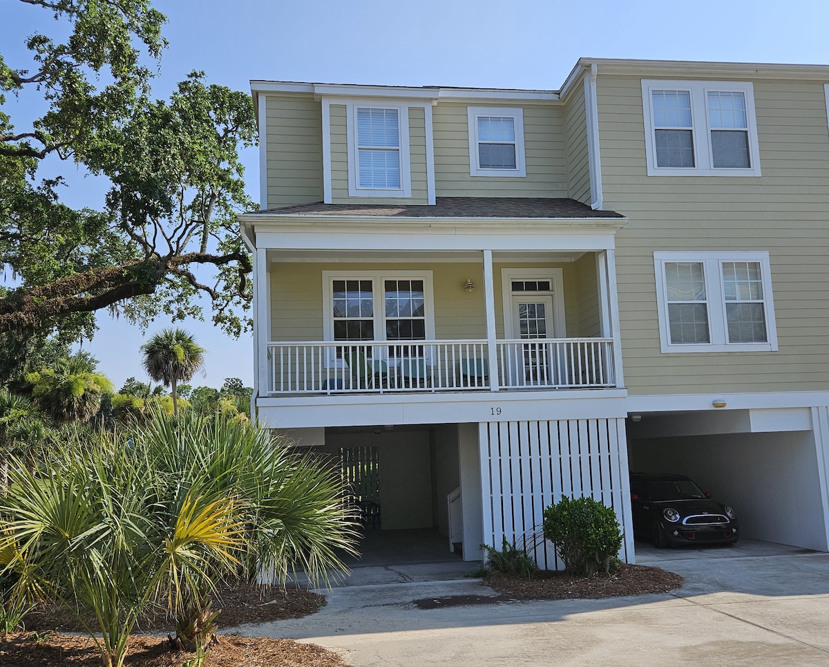 Inviting vacation home in Edisto Beach, perfect for making memories. Great location in Wyndham Ocean Ridge Resort, overlooking the ninth hole of The Plantation Golf Course. Easy bike/walk to the beach, restaurants, golf, pickleball, Wyndham pools & more. Generous living space, decks, fully equipped kitchen, dining for 10+, bath & laundry on the first floor. 4 bedrooms, each with private bath are on the 2nd floor. Tuck under parking for 2-4 vehicles - additional parking available.