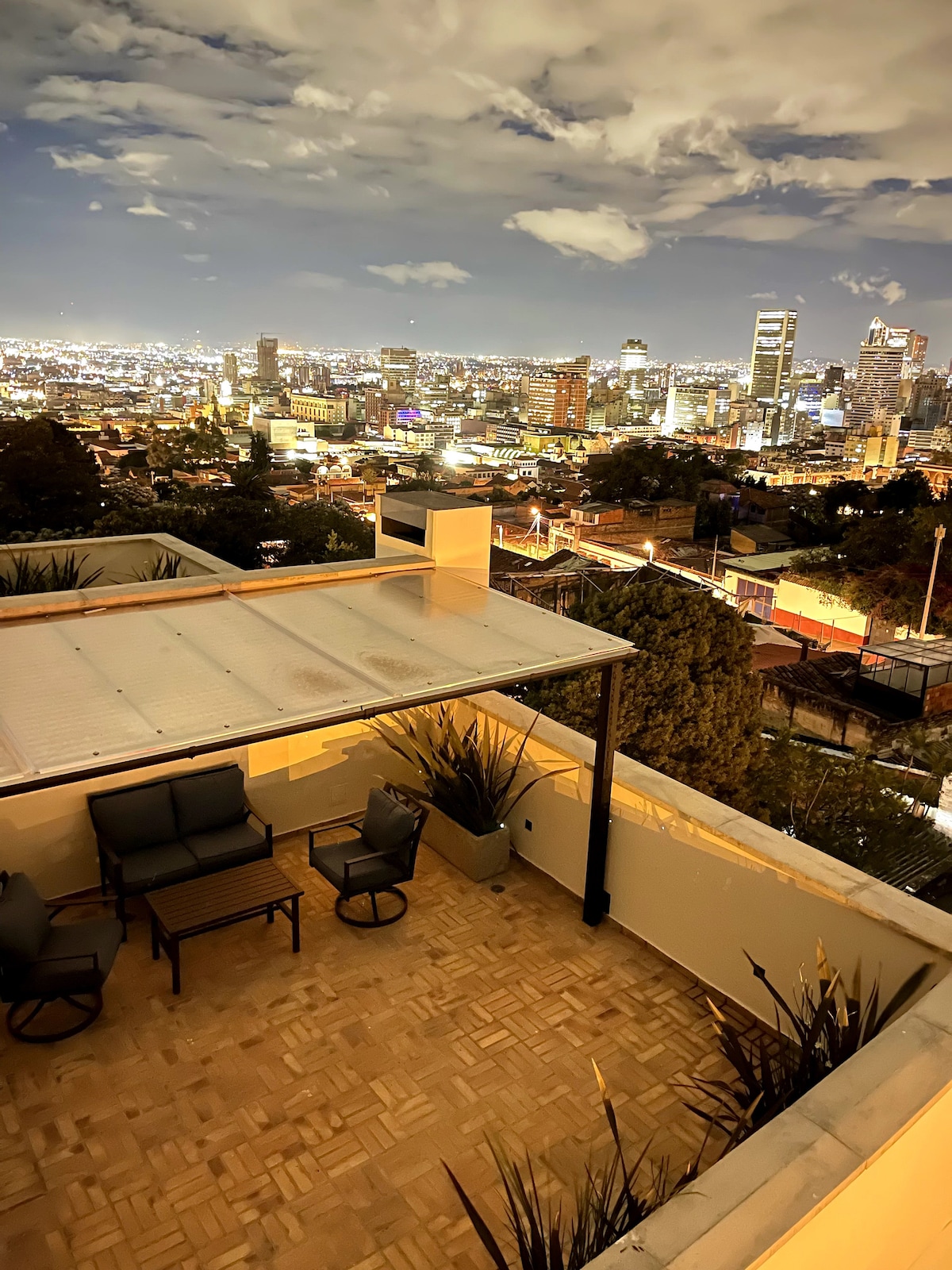 Beautiful duplex penthouse in downtown Bogotá with the best view of the city, the building's social area with heated pool, Jacuzzi, sauna, gym, BBQ terrace, and coworking. It has all the amenities to make your stay in the city a very pleasant time. The area has supermarkets, pharmacies, restaurants, bars, nightclubs, La Macarena, The National Museum and The Bogotá Planetarium. 130 m2. Space for up to 6 guests, 6th on a sofa bed.