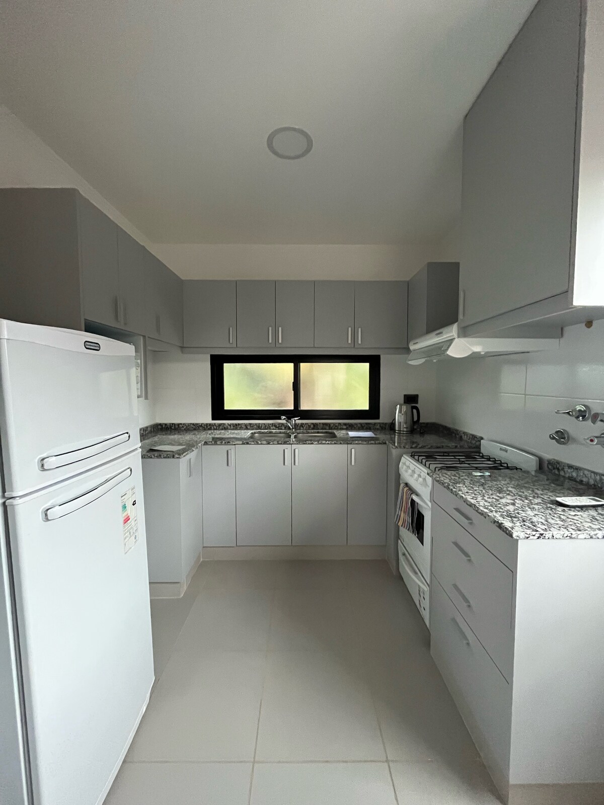 Very spacious and bright apartment on the 3rd floor. Excellent location one block from the beach and the port. It has 1 bedroom with a double bed, 1 full bathroom, kitchen-dining room (full dishes), double balcony with grill and laundry, covered parking included inside the building and elevator. 2 LED TVs, Wi-Fi service. Hot/cold air conditioning. 1 heater. It has towels and bedding. Balcony with beautiful view of the Uruguay River for a good rest!