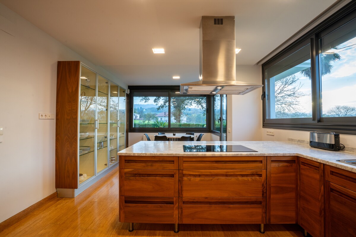 Disconnect from routine and reconnect with nature. Our rural house, surrounded by mountains, is the perfect retreat for those seeking peace and beautiful landscapes. Large windows fill the rooms with natural light and offer views of the surroundings. Just a short drive away, the coast and its stunning beaches allow you to enjoy both sea and mountains in one getaway. Natural materials and outdoor areas invite you to relax and unwind at your own pace.