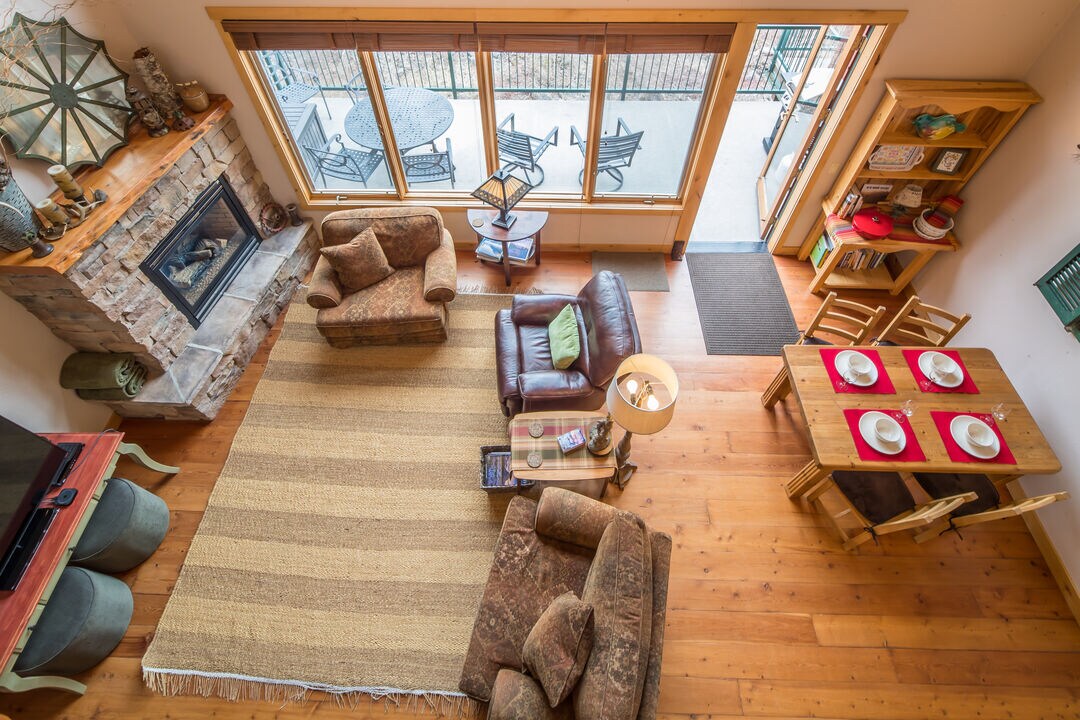 Condo w/stone fireplace, views, AC
