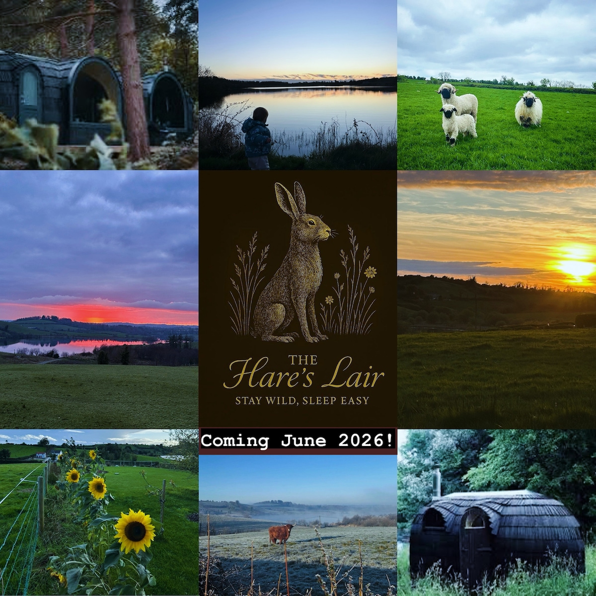 Escape to The Hare’s Lair, a peaceful boutique glamping retreat in the Monaghan countryside. Stay in your own private lakeside cabin with a king-size bed, hot tub, fire pit and calming nature views. Unwind in the Nordic sauna, meet our Highland cattle and Valais Blacknose sheep(the cutest sheep in the world), and enjoy starry skies, cosy evenings and complete tranquillity — a perfect romantic, restful escape designed to help you slow down, switch off and reconnect with nature.