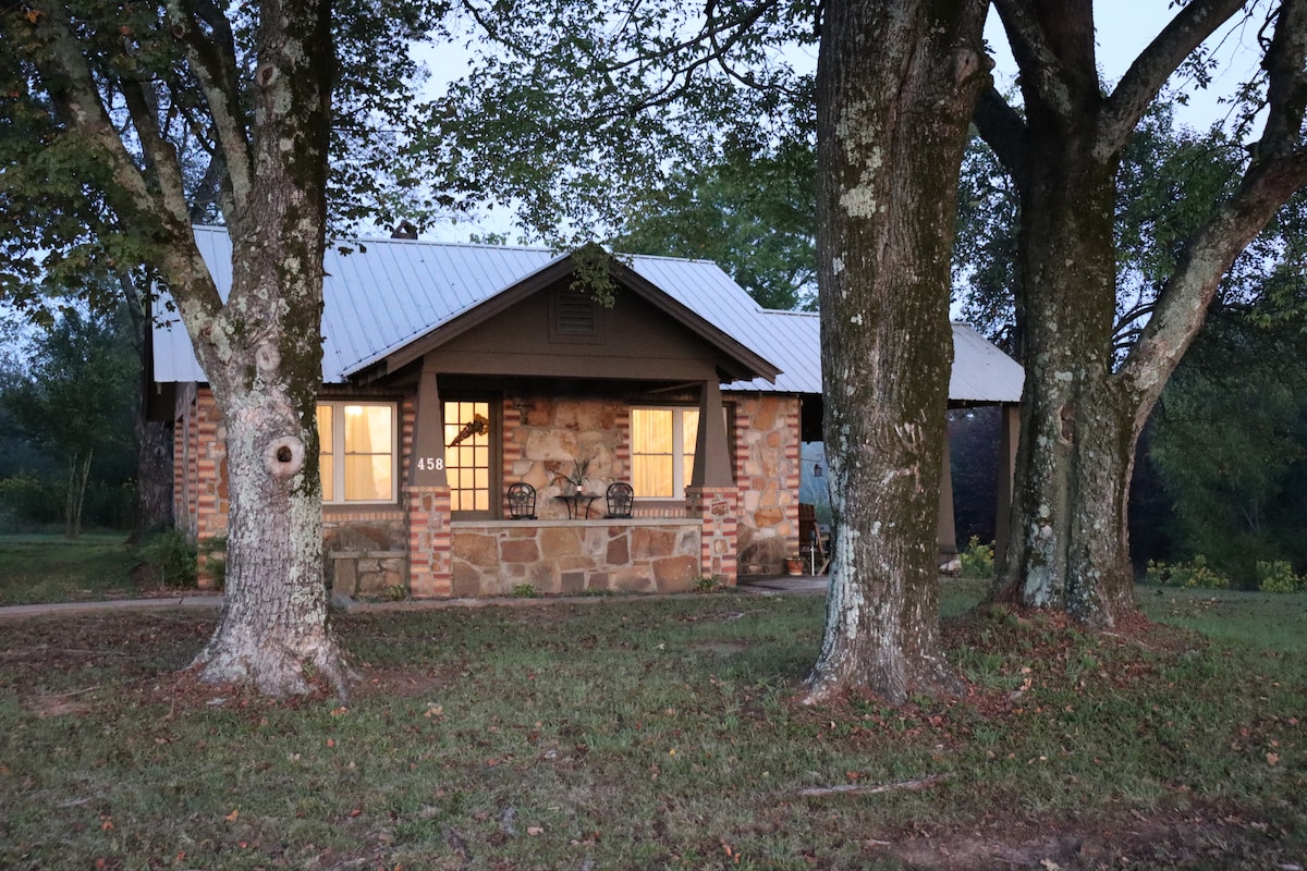 Enjoy our adorable little cabin in a rural countryside. Plenty of quiet but not far from town. Come enjoy our star filled skies. The S'Mores are on us. Freshly painted interior, crisp clean sheets and ultra cool air conditioner. Can’t beat the comfort level here. Unfortunately we cannot accommodate ATV or boat trailers in our drive. Now offering WiFi. Roku TV too!