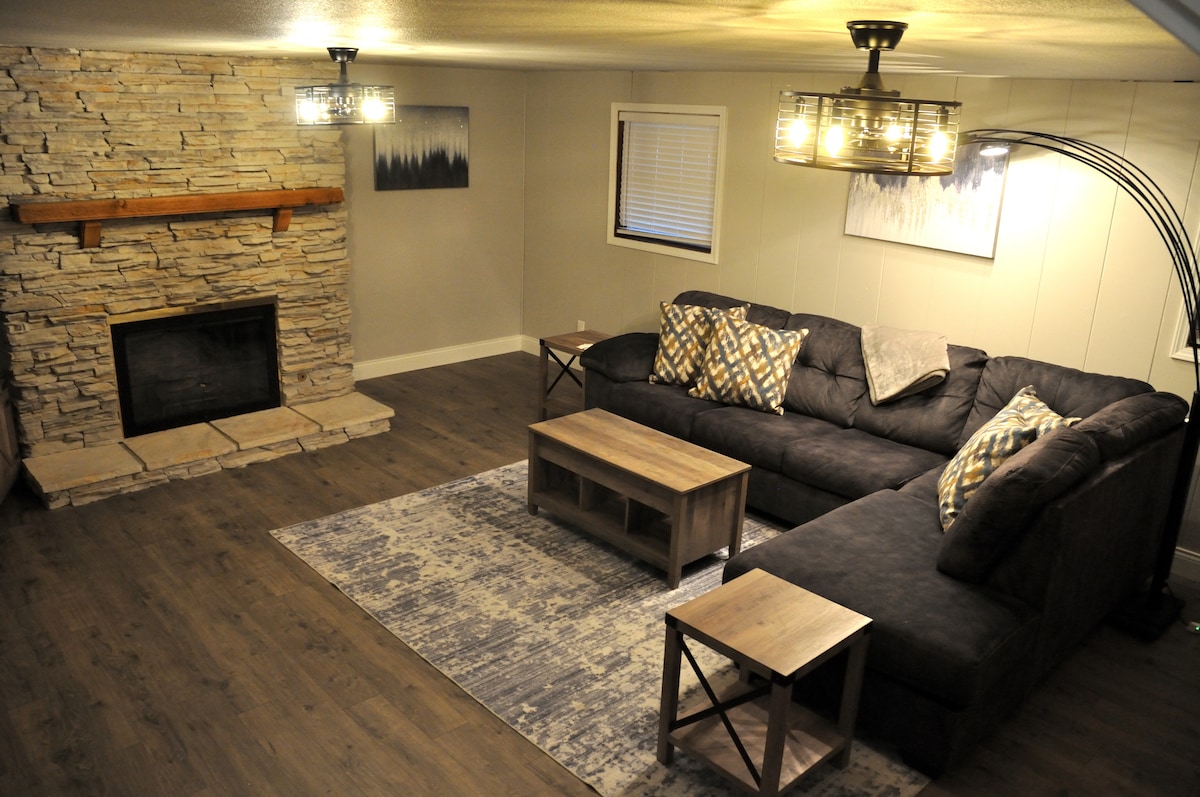 SEE OUR SPRING DISCOUNTS Fully renovated home with breathtaking views of downtown lights and Peoria Lake - two full king ensuites, custom gourmet kitchen, cozy den w/ fireplace, lounge with walkout access to an amazing second story deck for cocktails, coffee or just relaxing and watching beautiful sunsets. The recently added third story is 600 sq ft suite, complete with king size bed, fireplace, walk-in closet and full bath with double walk-in shower. Pamper yourself