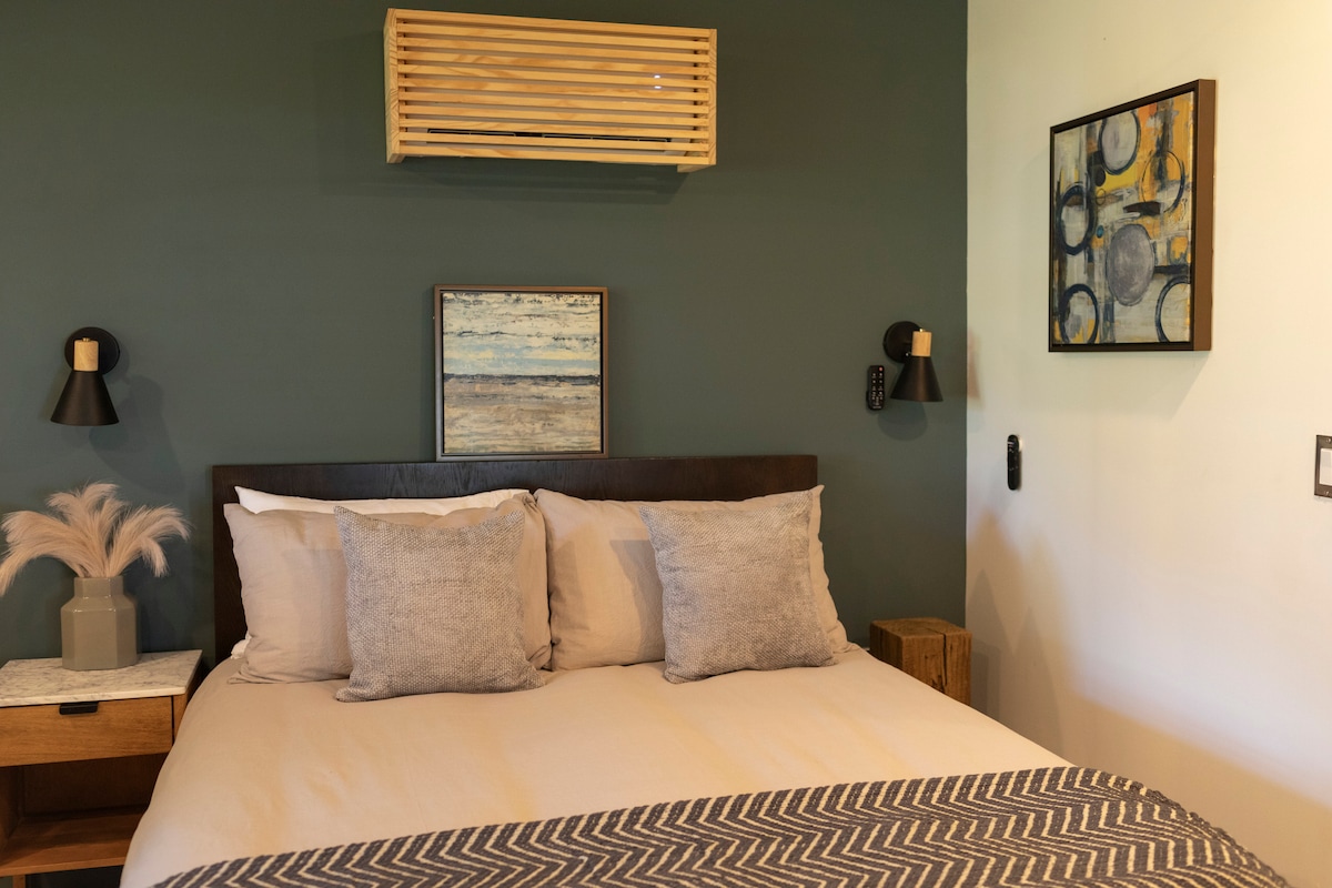 Kick back and relax in this calm, stylish space. It has queen and twin beds and also has a full bathroom with shower. AC and heat are provided as are towels and linens. A mini fridge and microwave have just been added. Finally, it has an HDTV with WiFi for enjoying movies or other entertainment.