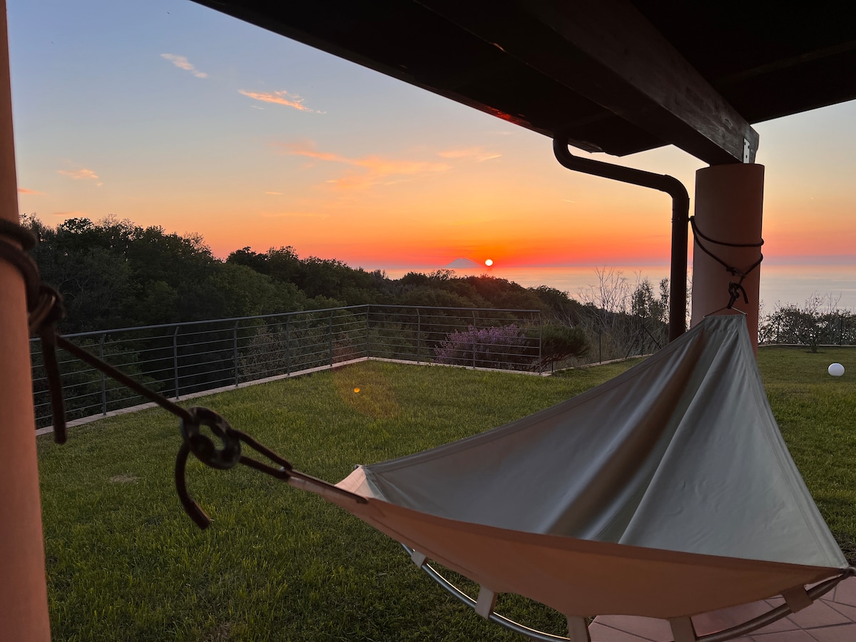 Relax with the whole family in this cozy home surrounded by greenery—ideal for those seeking peace and stunning views of the Tyrrhenian Sea and Stromboli, especially at sunset. - The apartment includes: - Fully equipped kitchen - Two bedrooms with double beds - Bathroom with washing machine - Outdoor dining area Guests also have access to a shared panoramic terrace with hammocks and a lounge area—perfect for unwinding in nature.