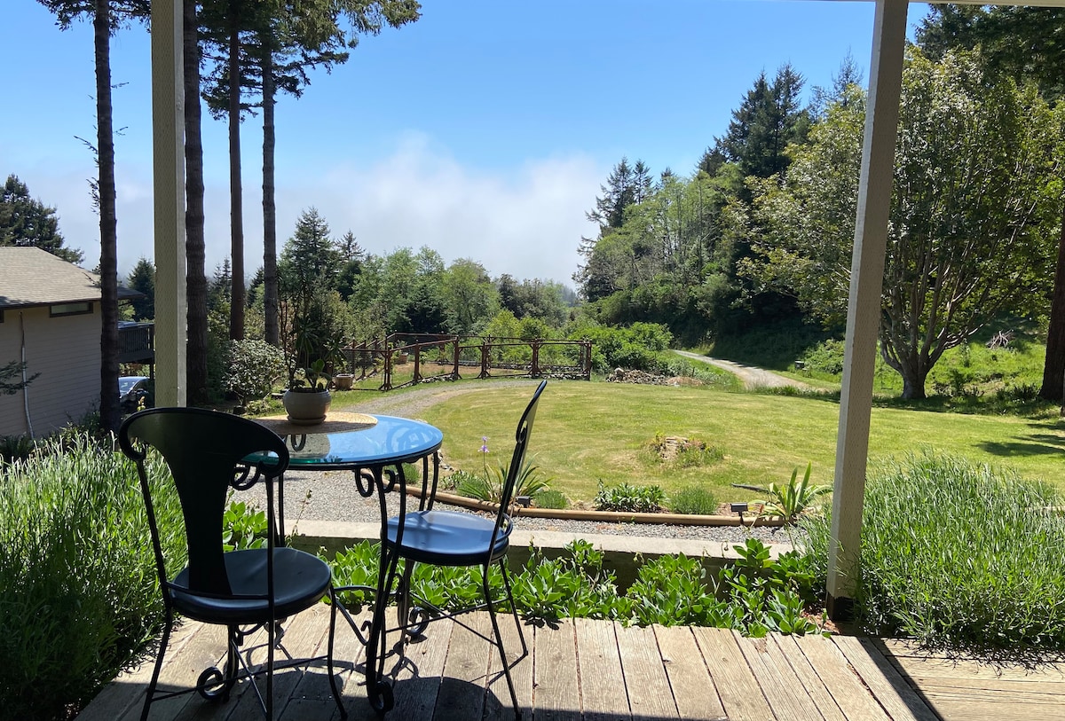 This QUIET, SPARKLING CLEAN suite has ASTONISHING outside ocean views from 4 decks! It's in a guesthouse on a cliff above the ocean, sleeps 3 & can sleep 4. (For "2nd bedroom" see "Beds & Bedrooms" below.) 🐬 This gated property has the magical charm of an old world villa. And at night there's a MAGICAL FAIRYLAND of LIGHTS. Plus great restaurants, the redwood forests, wild rivers & ocean beaches are all close! ----------- 👍 Full refund if you CANCEL within 48 hours of booking. -----------