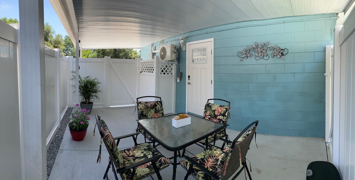 Come enjoy this gorgeous Villa, completely renovated into a comfy cozy cottage atmosphere with lots of character. One bedroom with a king bed, it’s own full bath and large screen tv? Short and long terms welcome. Tons of restaurants nearby. A half hour in one direction takes you to Busch Gardens, an hour in the other takes you to Universal Studios, Disney World and Seaworld. The beach is about an hour west or enjoy sitting on the back patio where it is quiet and peaceful!