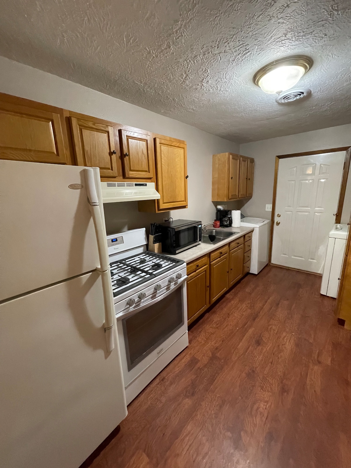 Welcome to your home away from home! Our charming private house features two cozy bedrooms and can comfortably sleep up to six guests. The spacious upstairs area provides ample room for relaxation and rest. Enjoy the convenience of a fully equipped kitchen, perfect for preparing your favorite meals, and a laundry area to keep your wardrobe fresh. Whether you're in town for business or leisure, our house offers all the comforts you need for a memorable stay. Book now and make yourself at home!