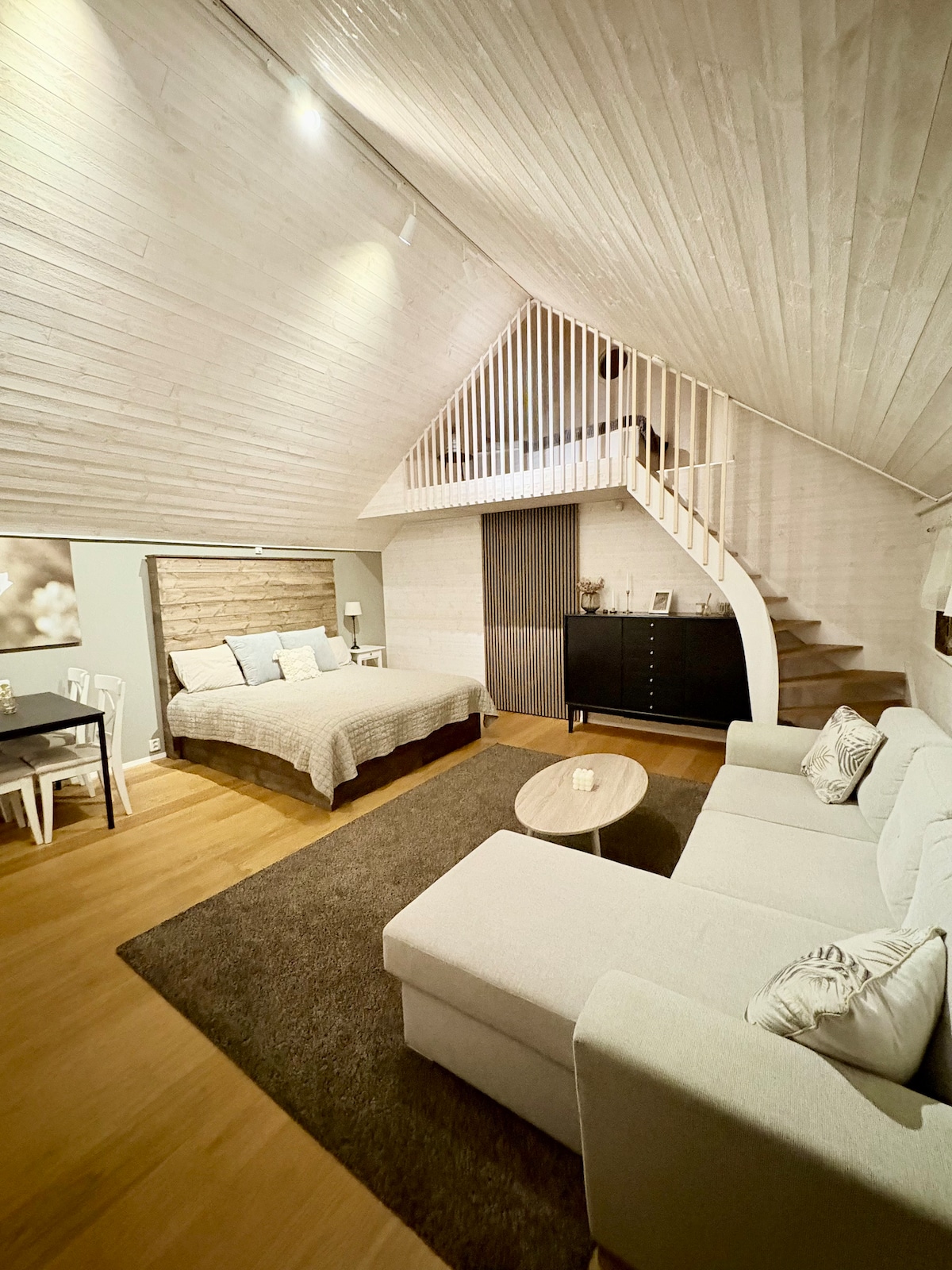 A super cozy timber cabin in the woods. This place is made for the adventurous or for a relaxing getaway. Just take our rowing boat for a swim at the lake, use our digital maps with paths only the locals know walking or biking, take a sauna or just cuddle upp in front of the huge soapstone stove. The cabin is around 50 m² and sleeps 5 persons with 2 single beds and 2 double beds to choose from. Firewood, maps, sauna, rowing boat etc is all inclusive & dogs are of course welcome too!