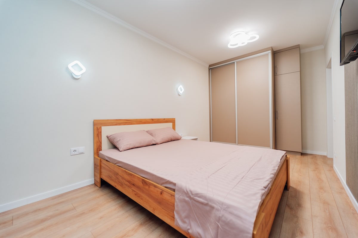 Welcome to your cozy stay in Chișinău, located in the green and quiet Buiucani area. This brand-new construction apartment has just been fully renovated — everything is fresh, clean, and modern. ✨ What you’ll love: • Newly renovated apartment with modern finishes • Washer & dryer inside the apartment (ideal for longer stays) • Bright, clean, and comfortable living space • Restaurants, cafés, and grocery stores right downstairs for maximum convenience