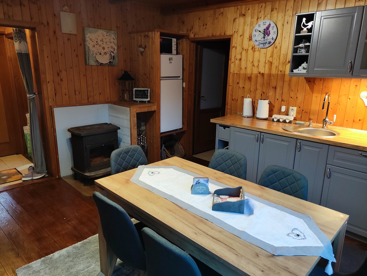I offer a cozy cottage for rent near the Ružiná water reservoir on the Divinská side. The cottage is ideal for families or groups of up to 7 people. It is located in a quiet and pleasant environment overlooking the surrounding nature. Cottage equipment: - 2 bedrooms - living area with sofa and fireplace -equipped kitchen - bathroom with a shower - outdoor seating and fireplace for pleasant evenings by the fire Location: The cottage is located directly by the water reservoir, which offers opportunities for water activities, fishing, hiking and cycling.