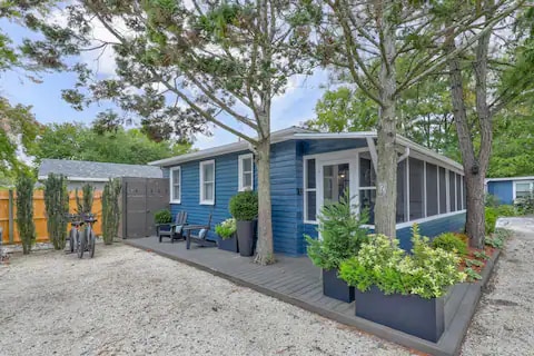 Steps to beautiful, uncrowded beach in Rehoboth-by-the-Sea! Experience tiny house living in our quiet, sweet, light-filled beach getaway with king-sized bed. We provide sheets, towels! Easy check-in+out - no chore list! Dog-friendly! Free parking. Full kitchen, fast WiFi, Roku tv, outdoor dining space, outdoor shower, grill, fire pit - quiet beach block in Dewey, a short walk to the Rehoboth boardwalk. New windows, new HVAC! Great, beachy location for a wonderful, relaxing getaway!