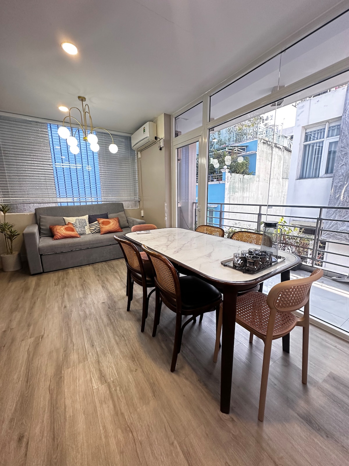 Welcome to the CHARMING house showcasing the ESSENCE of The old Saigon. Nestled in the heart of District 1, this residence offers a fusion of vintage ELEGANCE and MODERN convenience. Just next to BEN THANH Market and NGUYEN HUE walking street, with classic architectural accent & convenient location, cozy 02 BEDROOMS/02 BATHROOMS and 01 spacious LIVING ROOM of total 160sqm can host up to 09 PEOPLE, and will provide a retreat to the romantic and mysterious atmosphere of Saigon in the 70s decade.