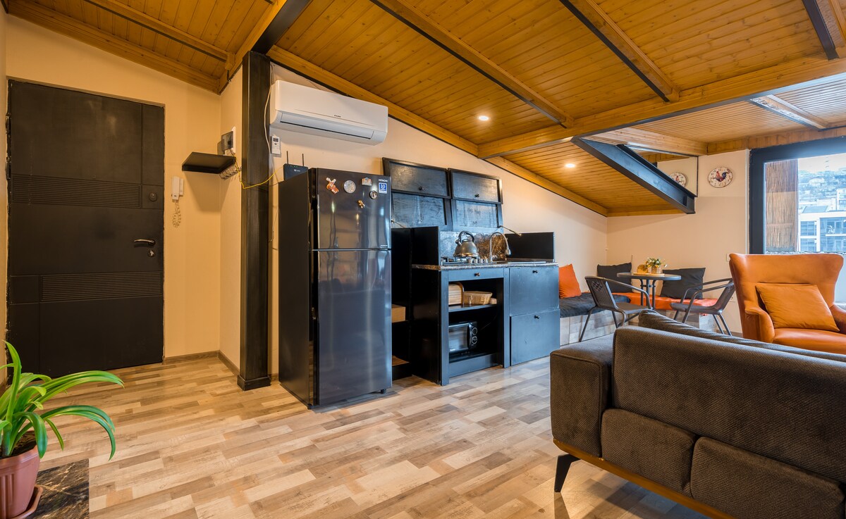 Located in Tbilisi’s prestigious central district. AIR CONDITIONING HAS BEEN ADDED IN THE BEDROOM. THE LIVING ROOM COACH has been recently restored . Set in a new luxury building in the cozy Round Garden area, this stylish loft combines vintage and urban design with a peaceful atmosphere. Perfect for working remotely — fast Wi-Fi, natural light, and a calm, inspiring space also for long stays or family trips. Baby cot, baby chair & baby bath is proving on request with additional payment