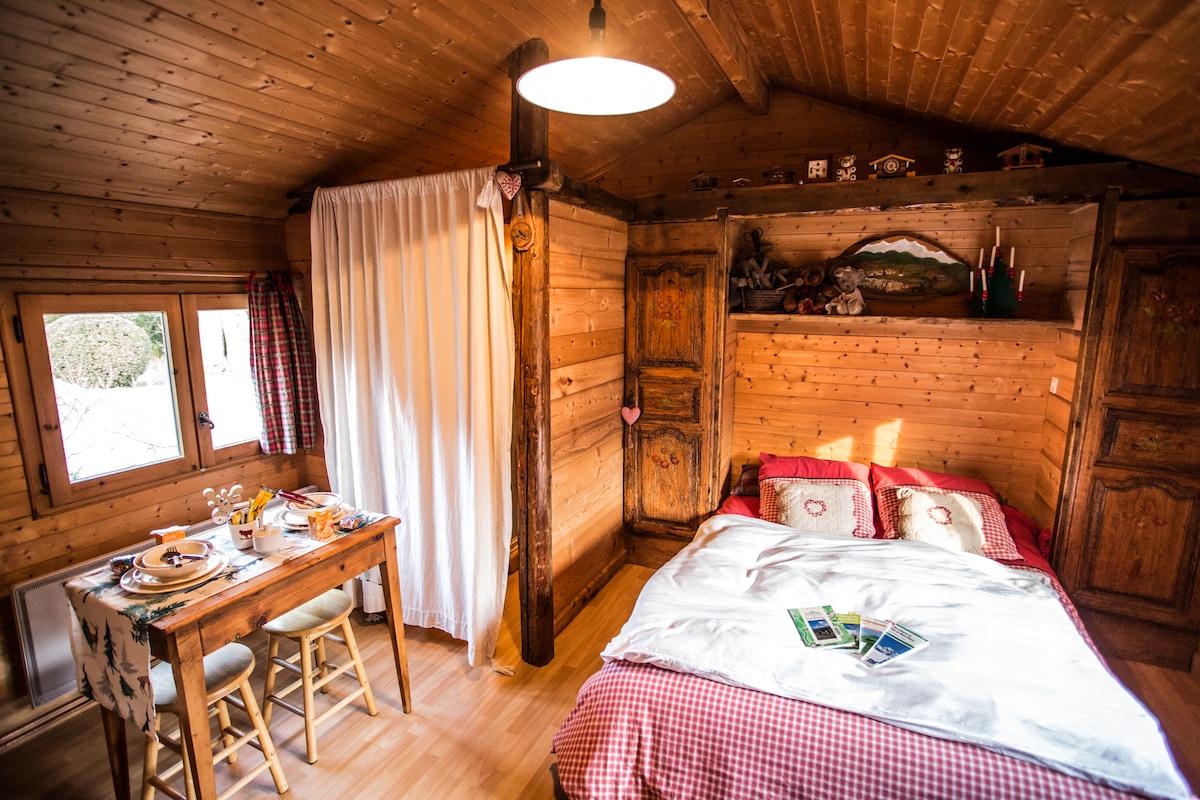 In the middle of beautiful vegetation, this small independent chalet consists of a single room designed to sleep 2 people. It is equipped with a shower area – toilet and a mini kitchen, dishes, coffee maker, kettle, hair dryer and essentials Close by is the beautiful Lake Passy, the ski slopes are 15 minutes away.