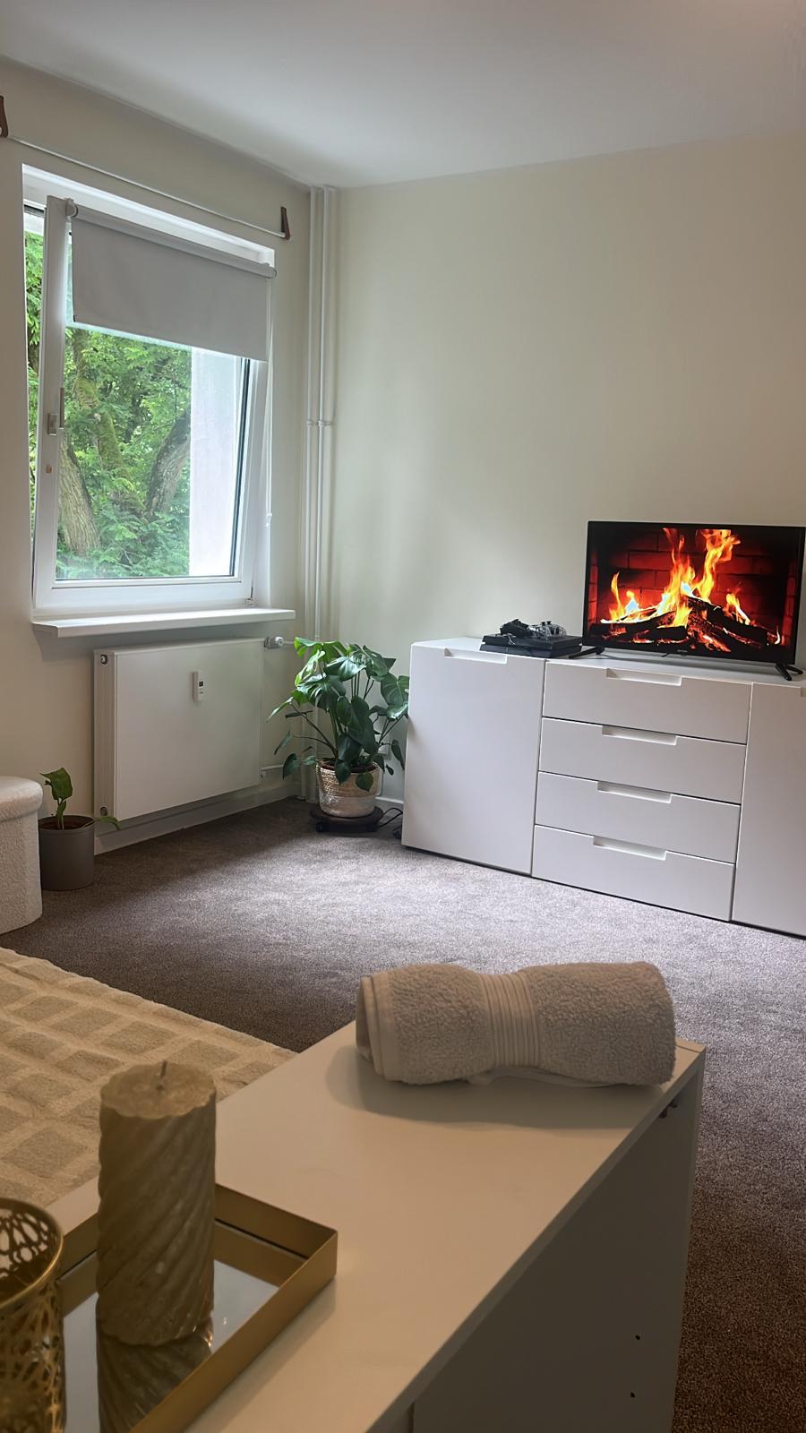 Voll mobileres Apartment wie z.B Herd, Backoffen, Spülmaschine, Fernsehe. Mit schnellem Fußweg zur Innenstadt. Ein Park befindet sich unmittelbar in der Nähe des Apartments, perfekt zum Joggen oder Spazieren gehen geeignet. Ein Supermarkt und eine Bäcker befinden sich Ca. 250M von dem Apartment entfernt. Ein Flughafen ist innerhalb 5 Minuten auch mit dem Auto erreichbar.