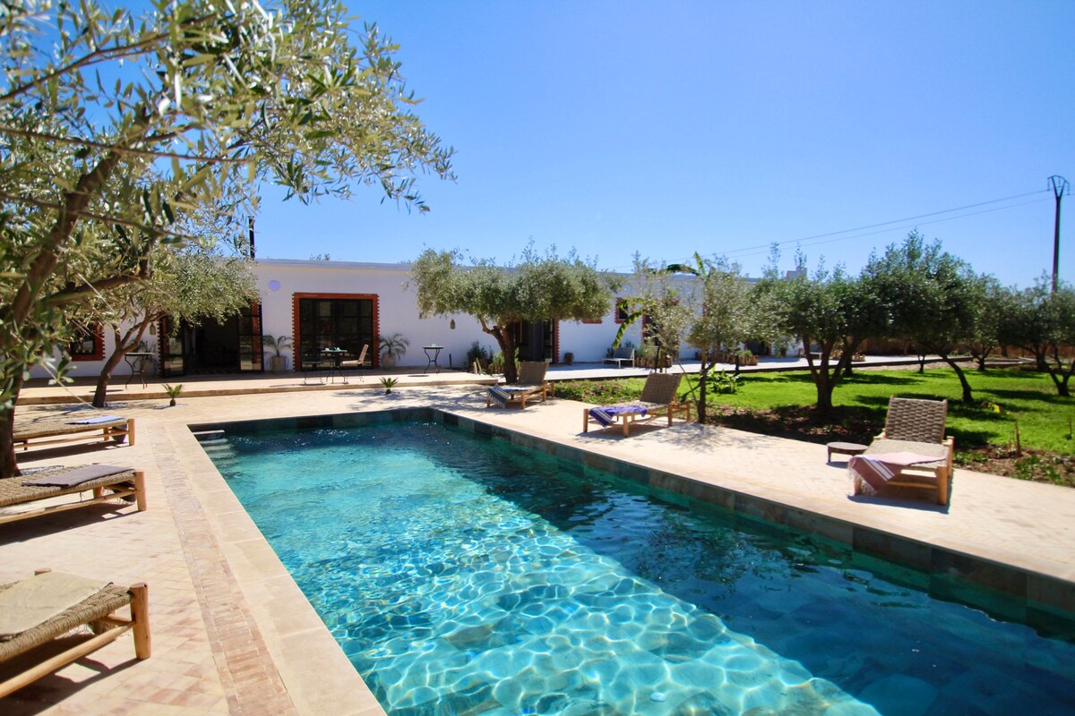 Our superb Ecological Villa welcomes you for a moment of relaxation and absolute well-being. Enjoy our olive grove in the countryside, just 13 kms from Marrakech, to disconnect and rejuvenate. Our heated pool (12x4m, prof 1.45m) and our 4 air-conditioned bedrooms with Beldi Chic design are designed to make your stay unique. We offer many sports activities (yoga, pilate, fitness, hiking in the Atlas Mountains).