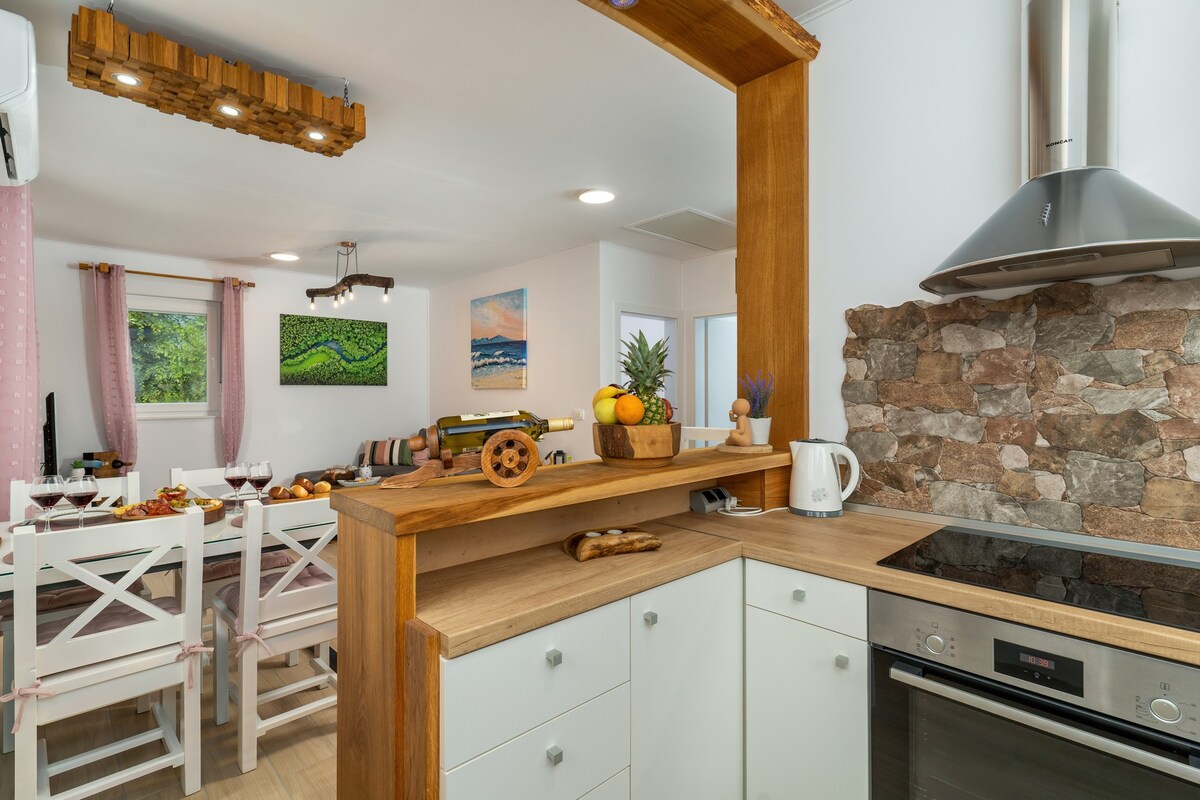 Located in a quiet area, within a family house, this apartment overlooking Kastav and Viškovo is a real little paradise for peace and relaxation. The apartment is fully equipped with all household appliances, and there is also a barbecue with a table for the whole family. The features that make this apartment stand out are the quiet and pleasant nights without the summer heat, mornings full of birds chirping and the surrounding nature. The location is ideal for excursions in the area, and the nearest beach can be reached by car.