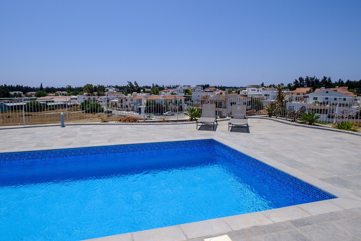 Welcome to a beautiful 2-bedroom penthouse in Kiti, Larnaca, Cyprus! From the rooftop terrace, you'll enjoy amazing views of the pool and fields. You'll also be close to the airport, beach, local attractions, taverns, and bars. Inside, you'll find a modern kitchen, a comfortable living area, and two en-suite bedrooms. It's the perfect place for a relaxing getaway in Cyprus!