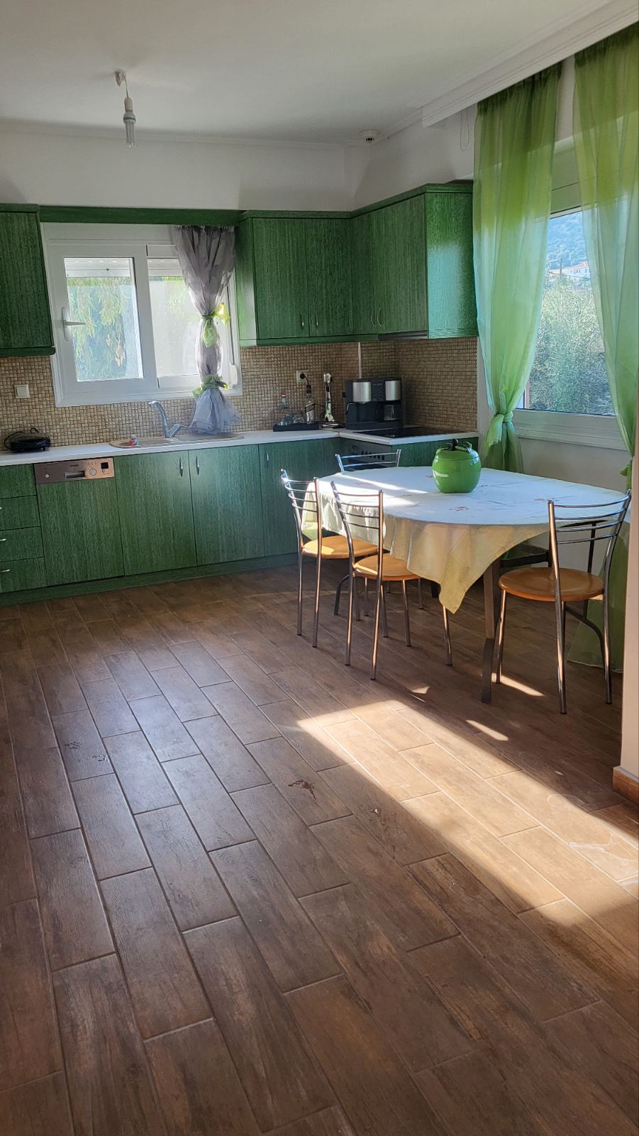 The entire first floor 110m2 is available in a detached house, quiet area near the small Harbor. Courtyard, Lawn, BBQ, Billiard Game Room. 300 meters from free beach. 2 km from organized beach Alykes with crowds Beach Bar. 7 km from Chalkida, 85 km from Athens, 90 km from Delphi. Upon request, transfer to and from Athens Airport Eleftherios Venizelos. Upon request, we offer you your transportation by car Minimum stay, 5 days.