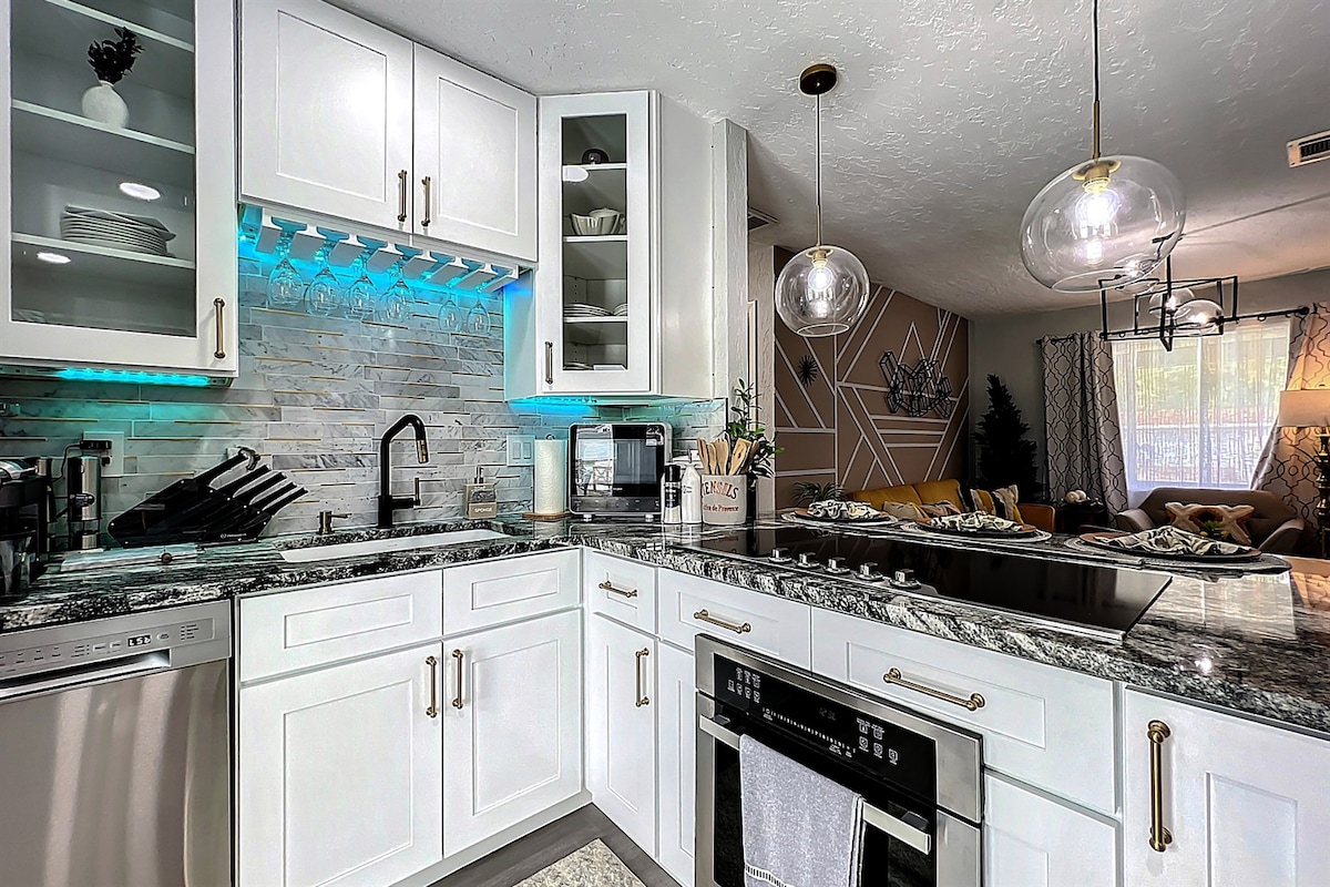 BTR#2114 This home has it ALL including incredible open water sunsets! Every detail has been carefully thought out and updated. This is a VERY upscale, coastal, single story waterfront home. A complete waterfront remodel w/ dock & pool that looks and feels like a new home w/ stunning water views from your own back patio! The water glistens and sparkles from 3 pm thru sunset and after, the sky is set on fire for 40 minutes. White sandy beach is only few blocks away! Amazing home inside & out!